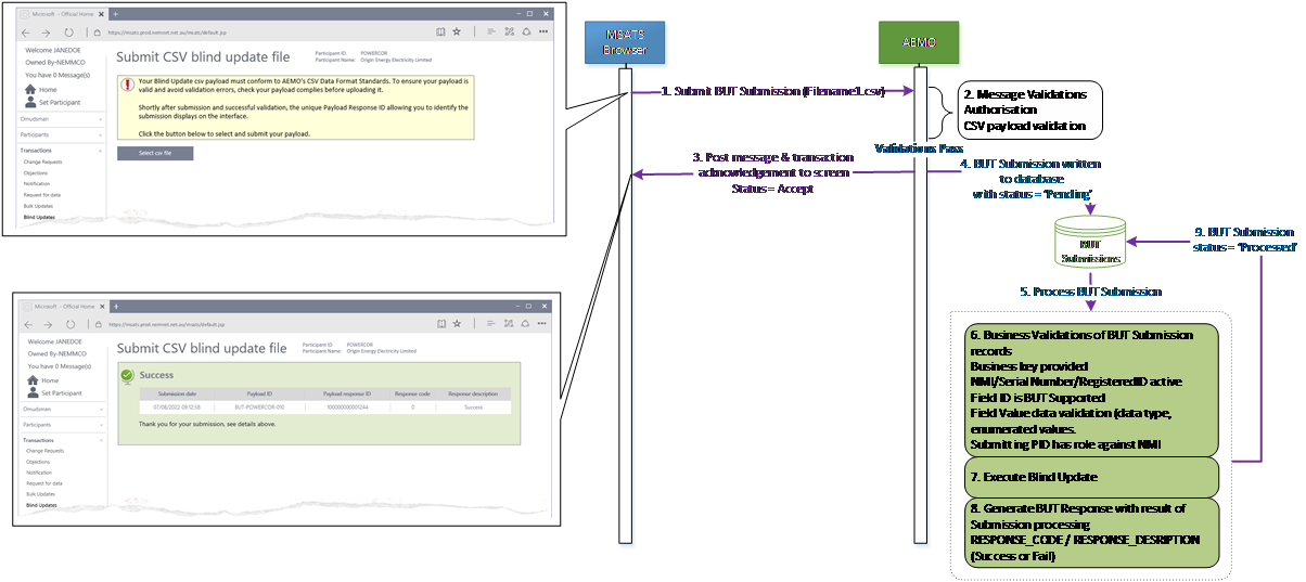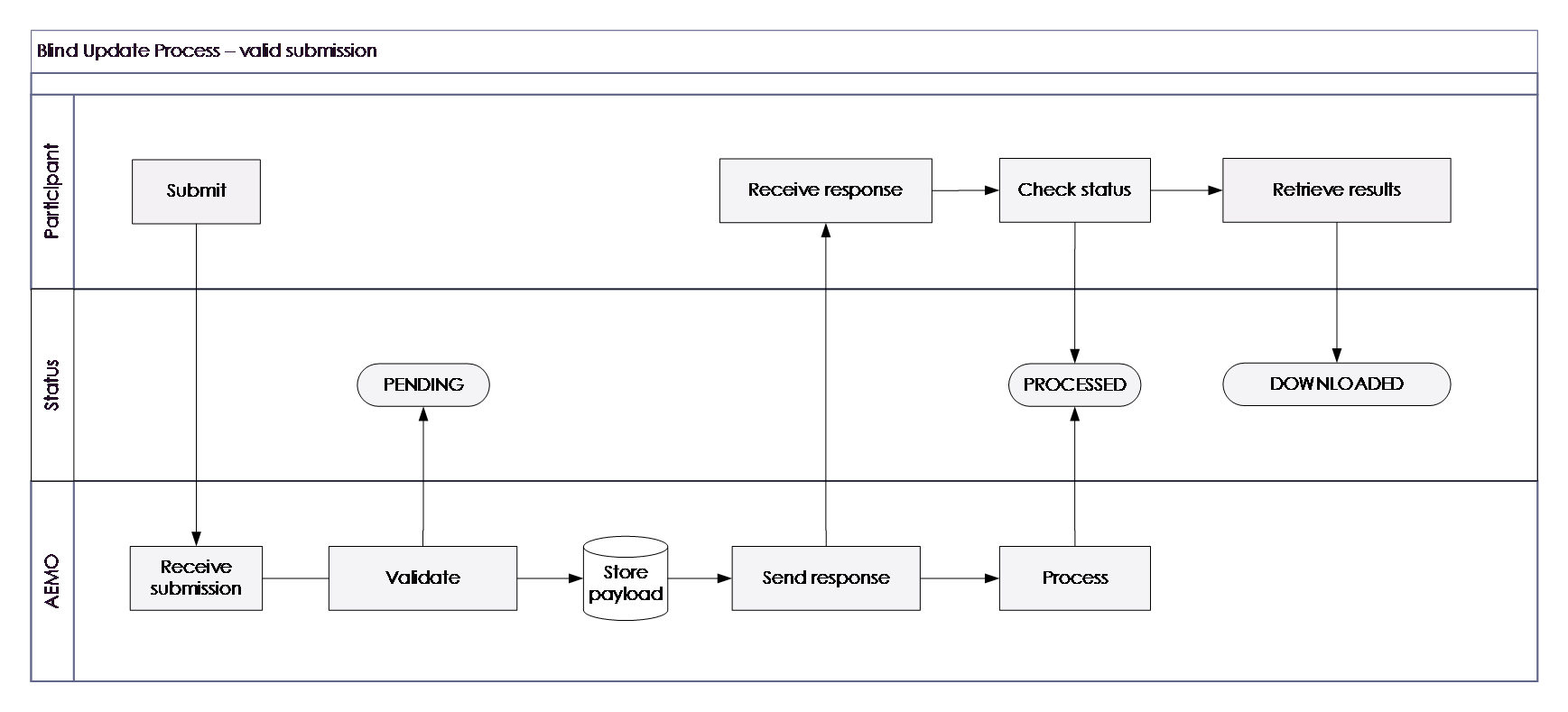 - If AEMO accepts the submission, it applies business validations and processes the updates later.