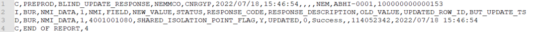 I,BUR,NMI_DATA,1,FIELD,NMI,NEW_VALUE,STATUS,RETURN_CODE,RETURN_MESSAGE,OLD_VALUE,UPDATED_ROW_ID,BUT_UPDATE_TS