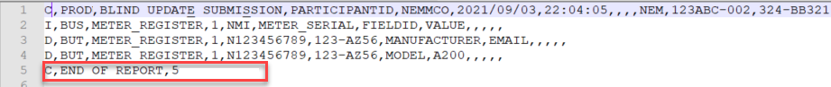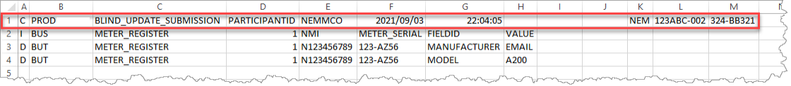 - Participants create a csv Payload with their Blind Update Submissions following AEMO’s CSV Data Format Standard.