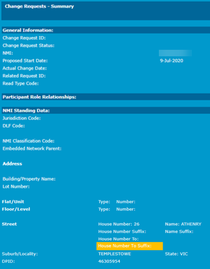 - Addition of HouseNumberToSuffix as an NMI Standing Data See National Electricitiy Rules item.